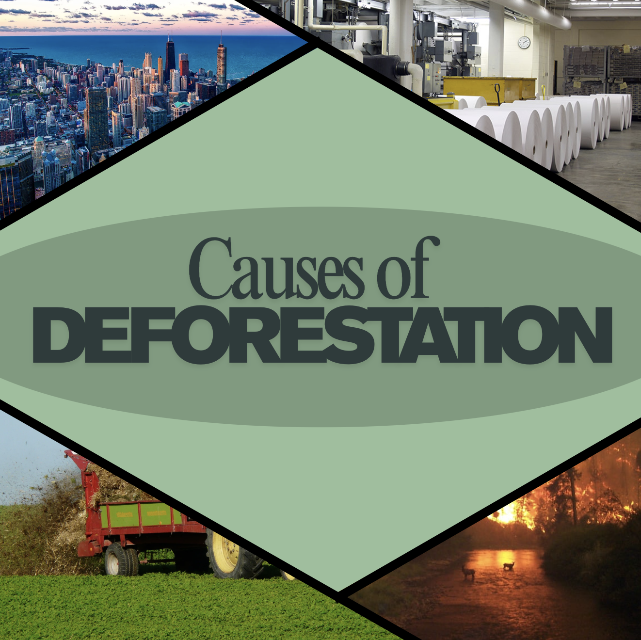 City expansion, paper production, fires, and commercial farming are major drivers of deforestation. Forests are cleared to make room for growing cities, while the paper industry cuts down millions of trees each year for products like notebooks and packaging. Fires, often set intentionally to clear land, destroy huge areas of forest. Commercial farming removes forests to grow crops such as soy or palm oil, or to raise cattle on a large scale. All of these activities lead to the loss of trees that help clean the air, regulate the climate, and support wildlife, making deforestation a serious threat to the health of our planet.